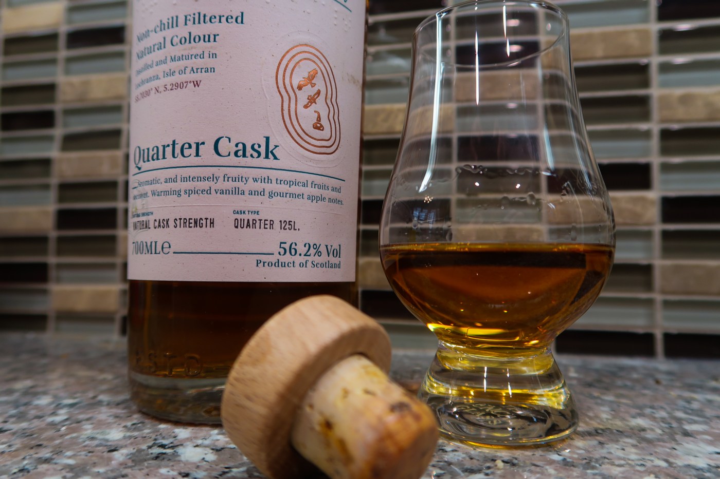 If you’ve been around the American bourbon block, you will immediately recognize the nose of the Arran Quarter Cask. Familiar notes of vanilla, heavy cherry presence, and deep orange peel are the prevailing aromas.